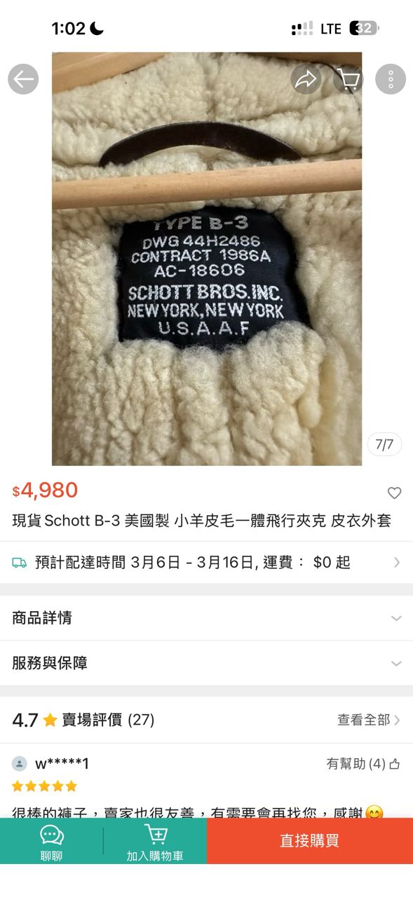 [皮衣] SCHOTT B3請益已刪文