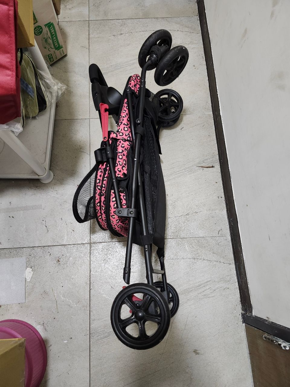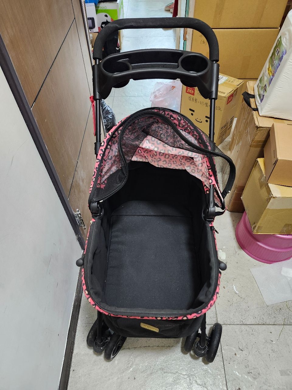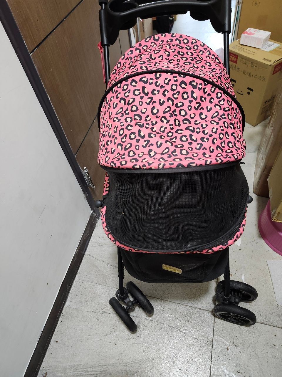 [出售] ibiyaya二手粉豹紋多功能寵物推車
