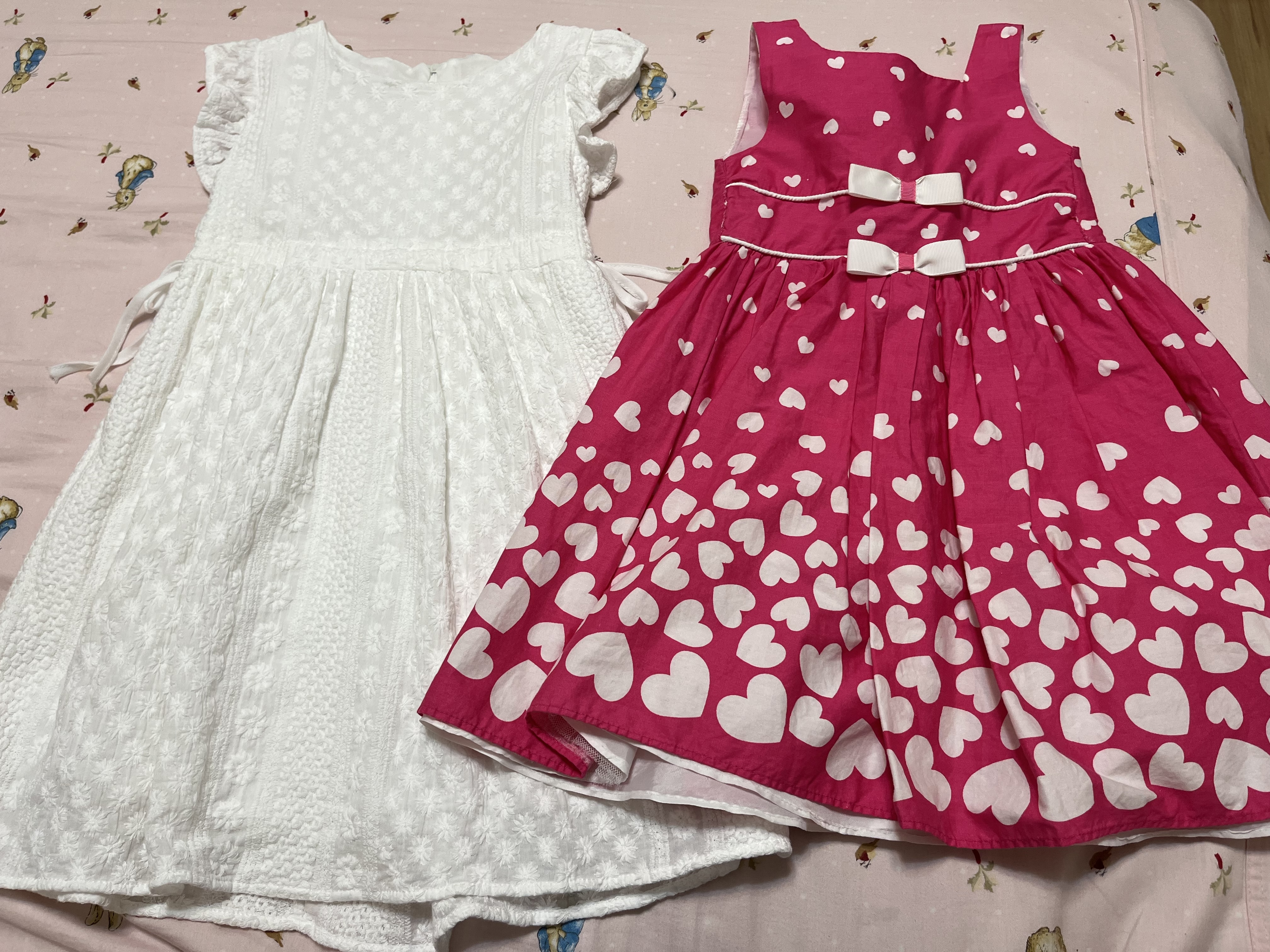 白色衣標130、桃紅沒有尺碼標(比白色洋裝略小),兩件一組欲售150含運