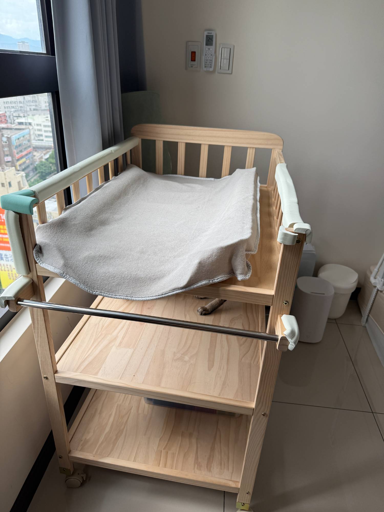 尿布台上防撞貼條可以幫忙拆掉(但建議不要拆 寶寶會抬頭會晃會撞)