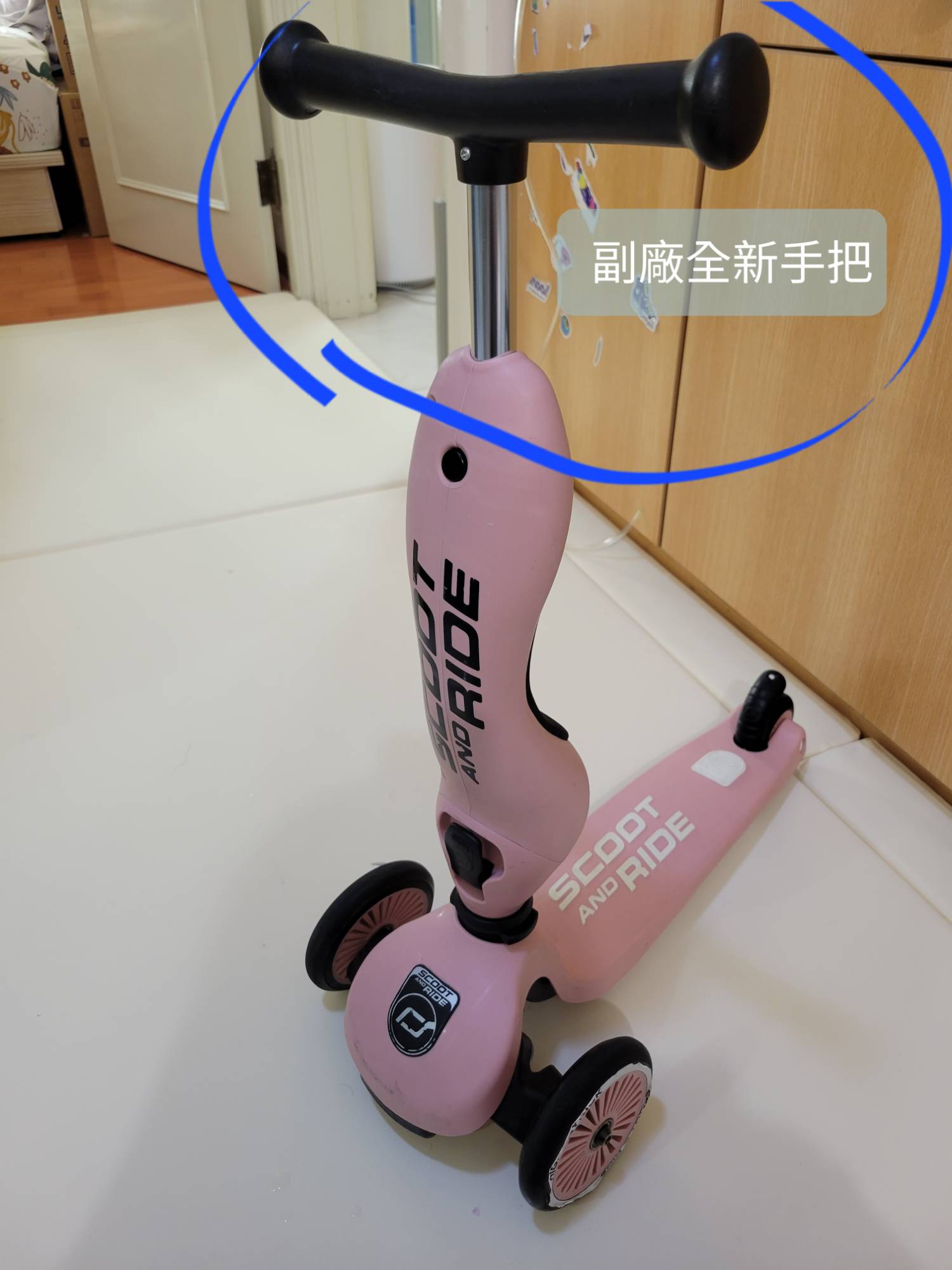 有自購全新副廠手把,但高度配起來略高,可以騎更久...