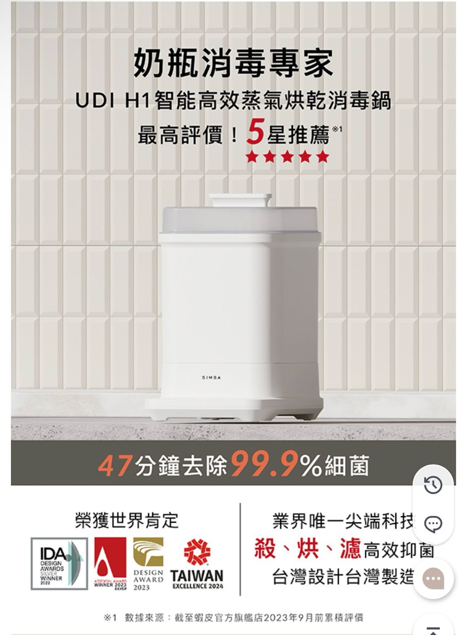 1. Simba UDI H1智能高效蒸氣烘乾消毒