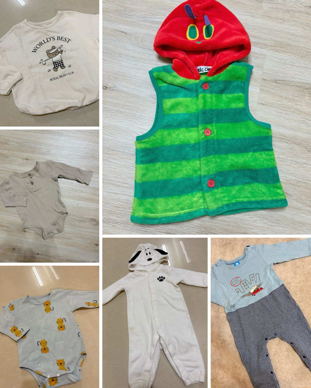 毛毛蟲背心、咖色包屁衣無污損