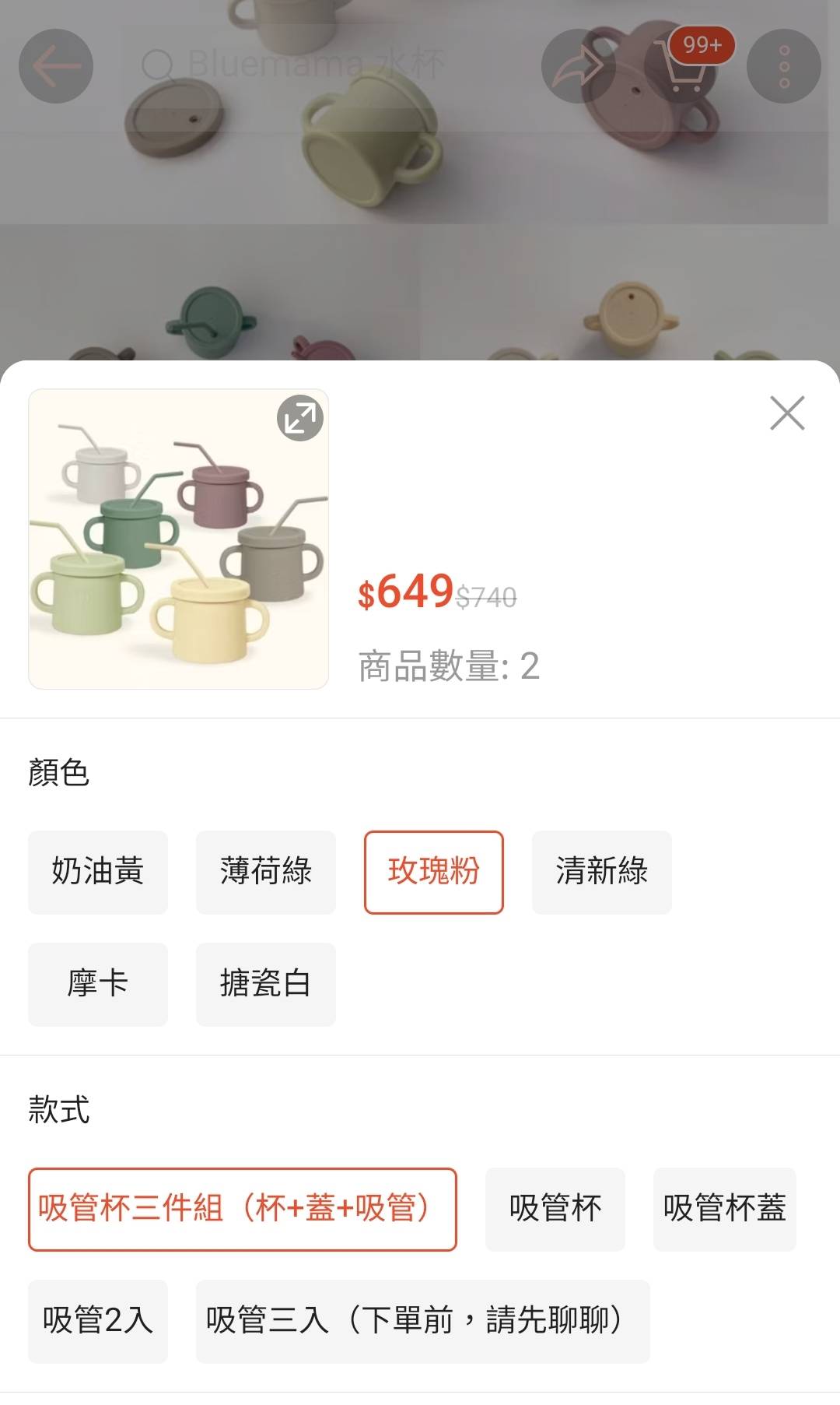 [出售] 全國 bluemama 鉑金矽膠吸管水杯三件組