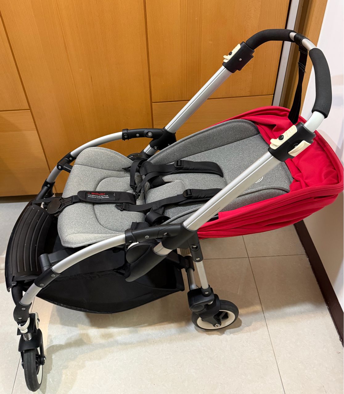 推車是去年帶小朋友出國前跟親友購買的,大約7-8成新,已清洗過。可雙向變換座位,