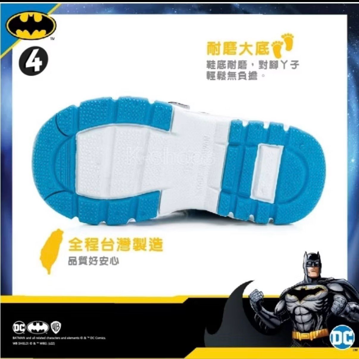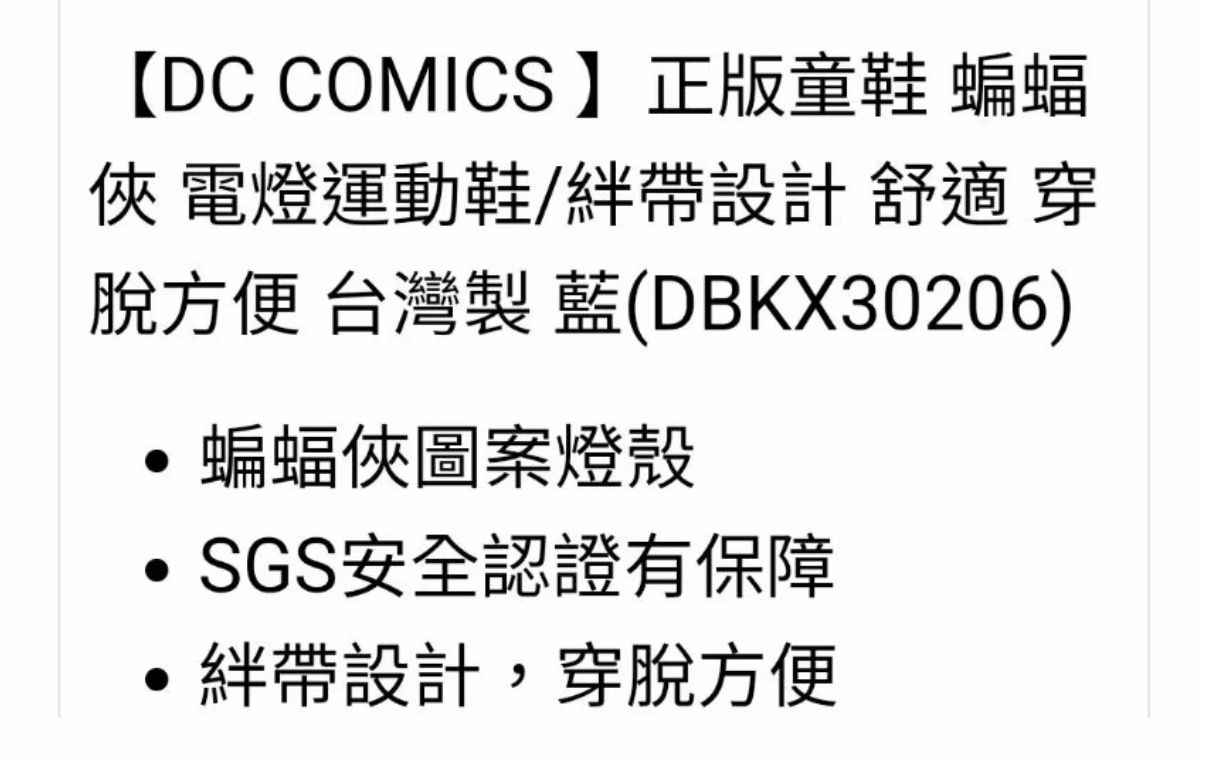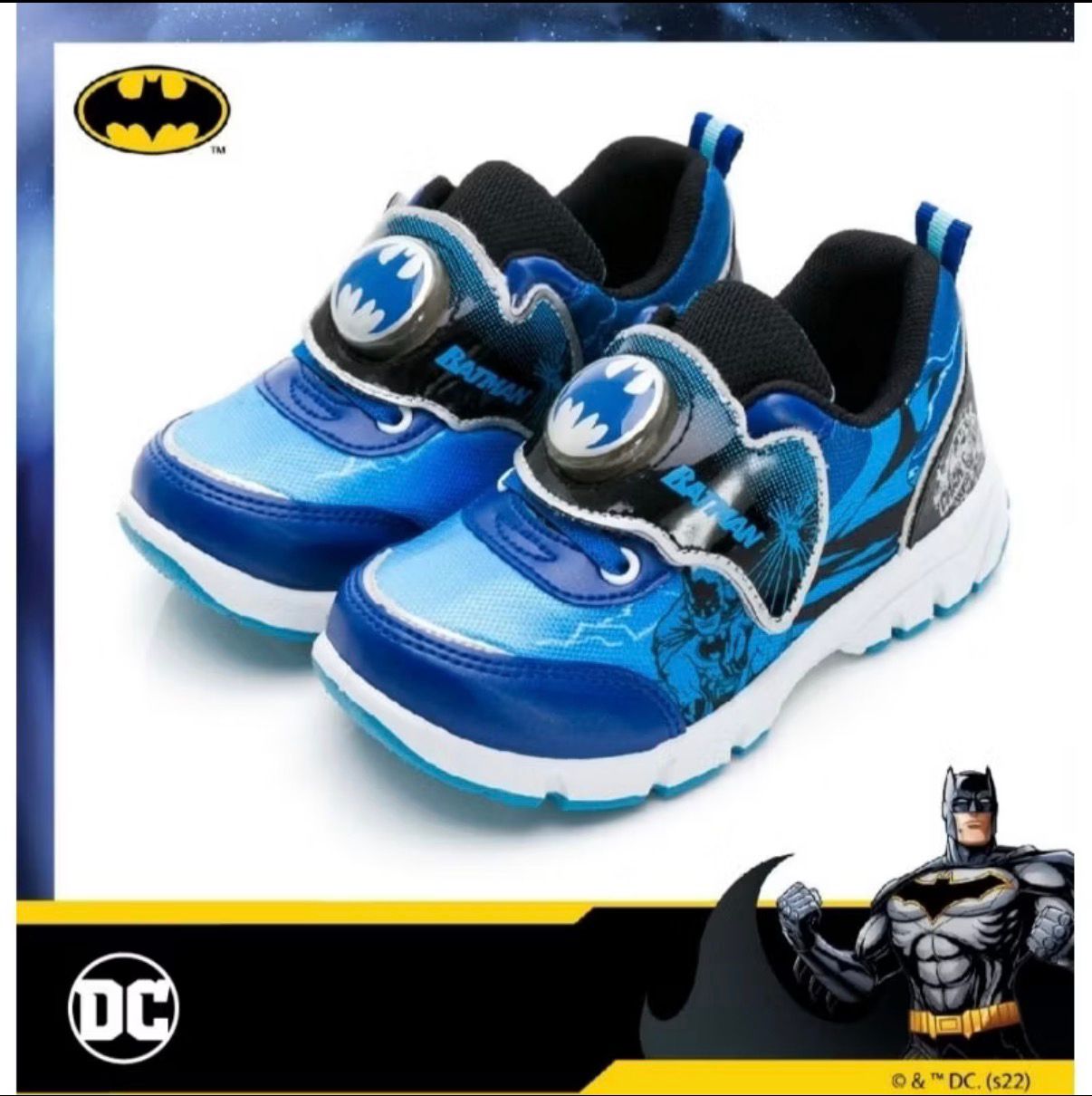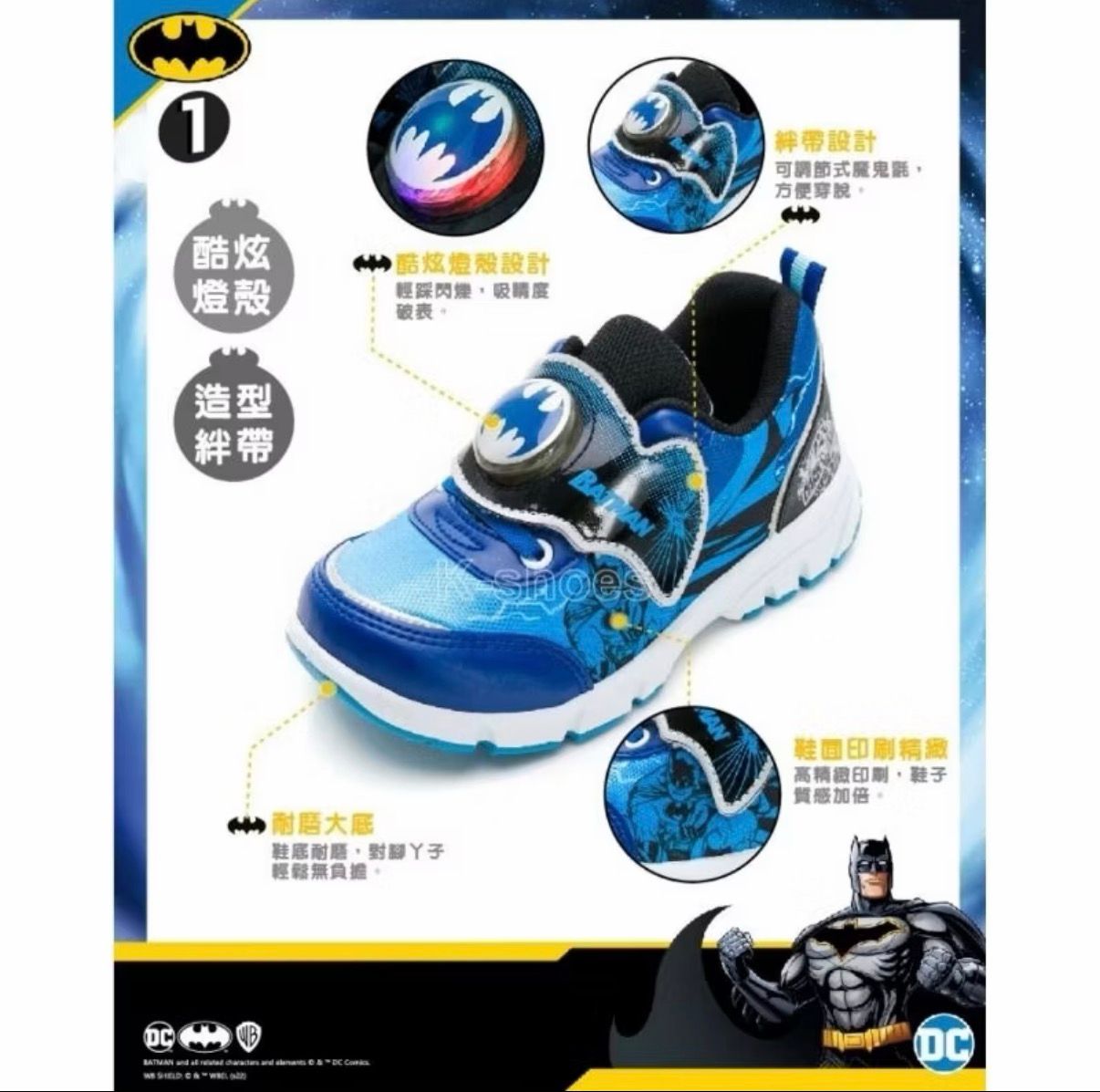 商品名稱:【DC COMICS 】正版男童鞋 蝙蝠俠 輕量透氣 魔鬼氈 電燈運動鞋 台灣製造
