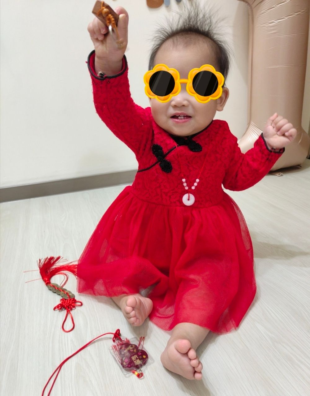 寶寶周歲兼過年穿過一次,實穿照: