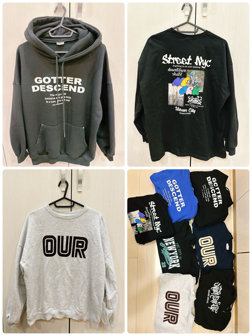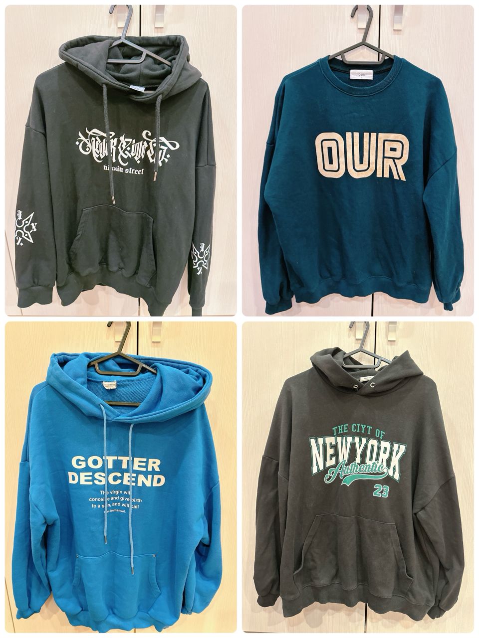 其中6件都是有點厚度的帽T/上衣唷