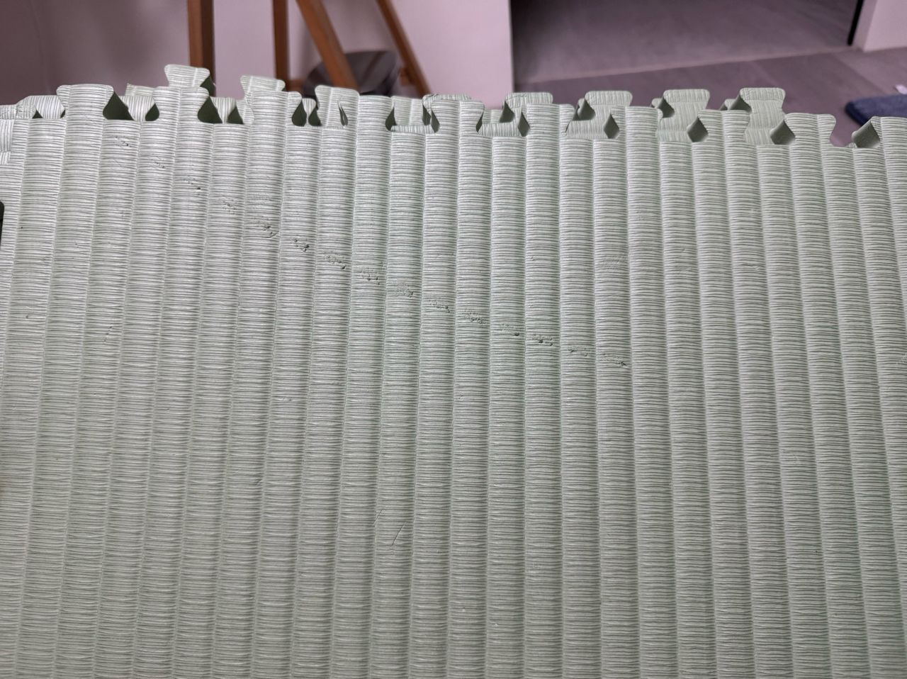 新舊狀況:二手,實際使用約1年,有些壓在家具下面有壓痕,圖片為較明顯的,一片附2