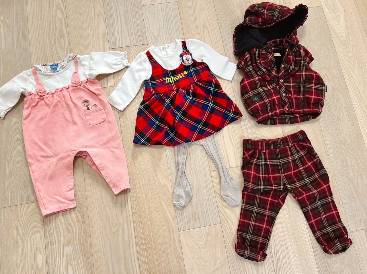 2)麗嬰房迪士尼米妮one piece +褲襪,衣標12M