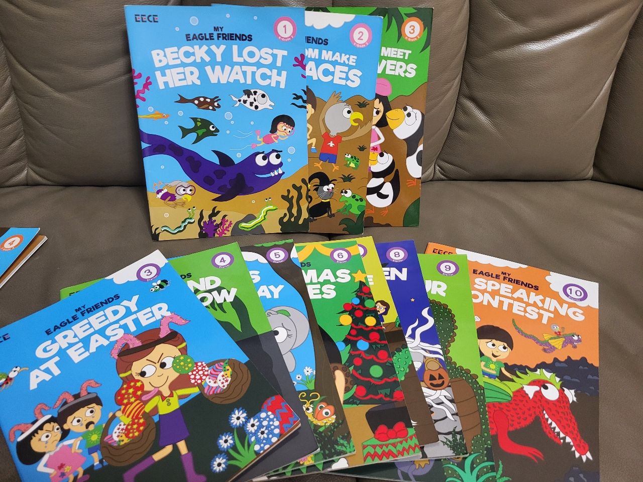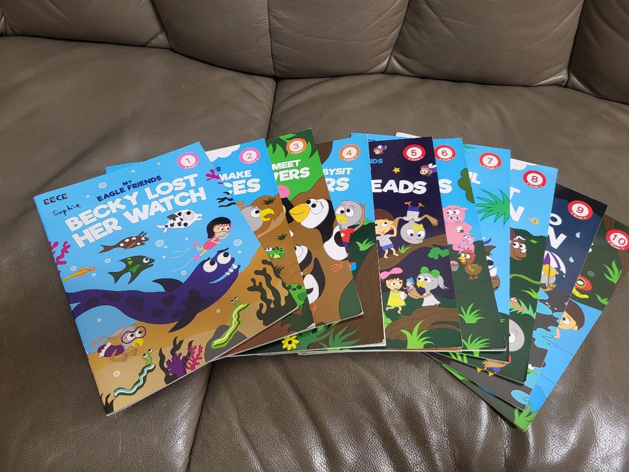 弋果英語的繪本,書目不齊全,有部分書的最後1、2頁練習題有鉛筆劃記,前面閱讀的地