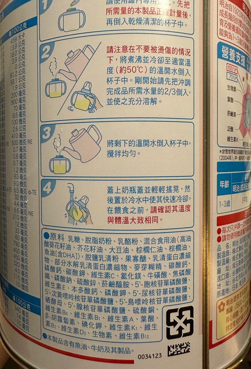 品名/品牌:明治成長配方奶粉1-3歲