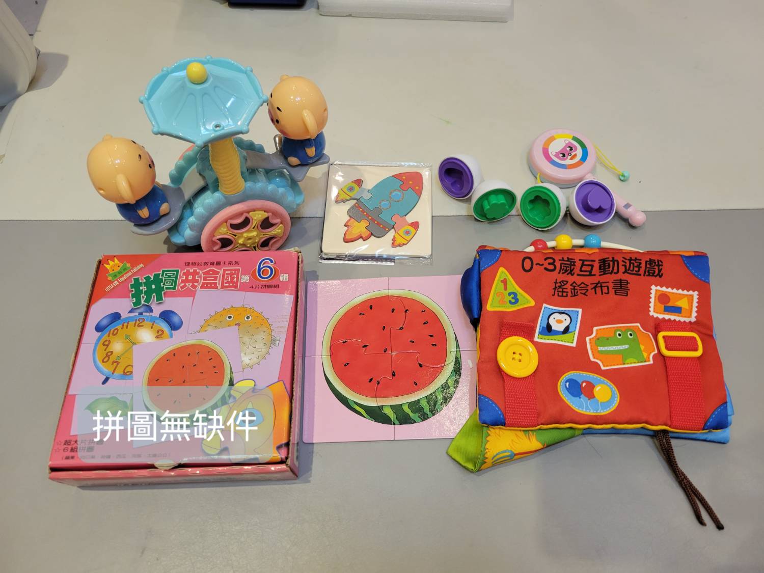 其他是拼圖,小玩具,跟豬豬聲光爬行玩具,功能都正常:)