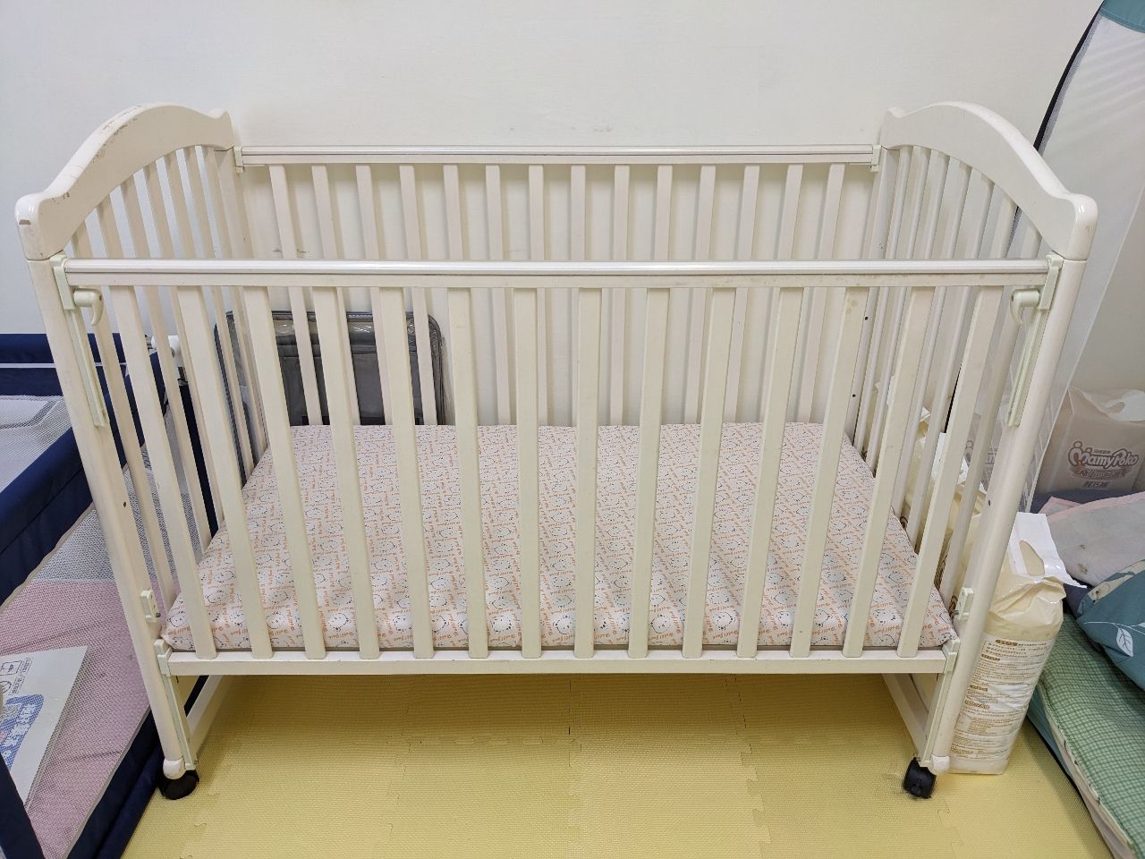 二手木製嬰兒床含床墊