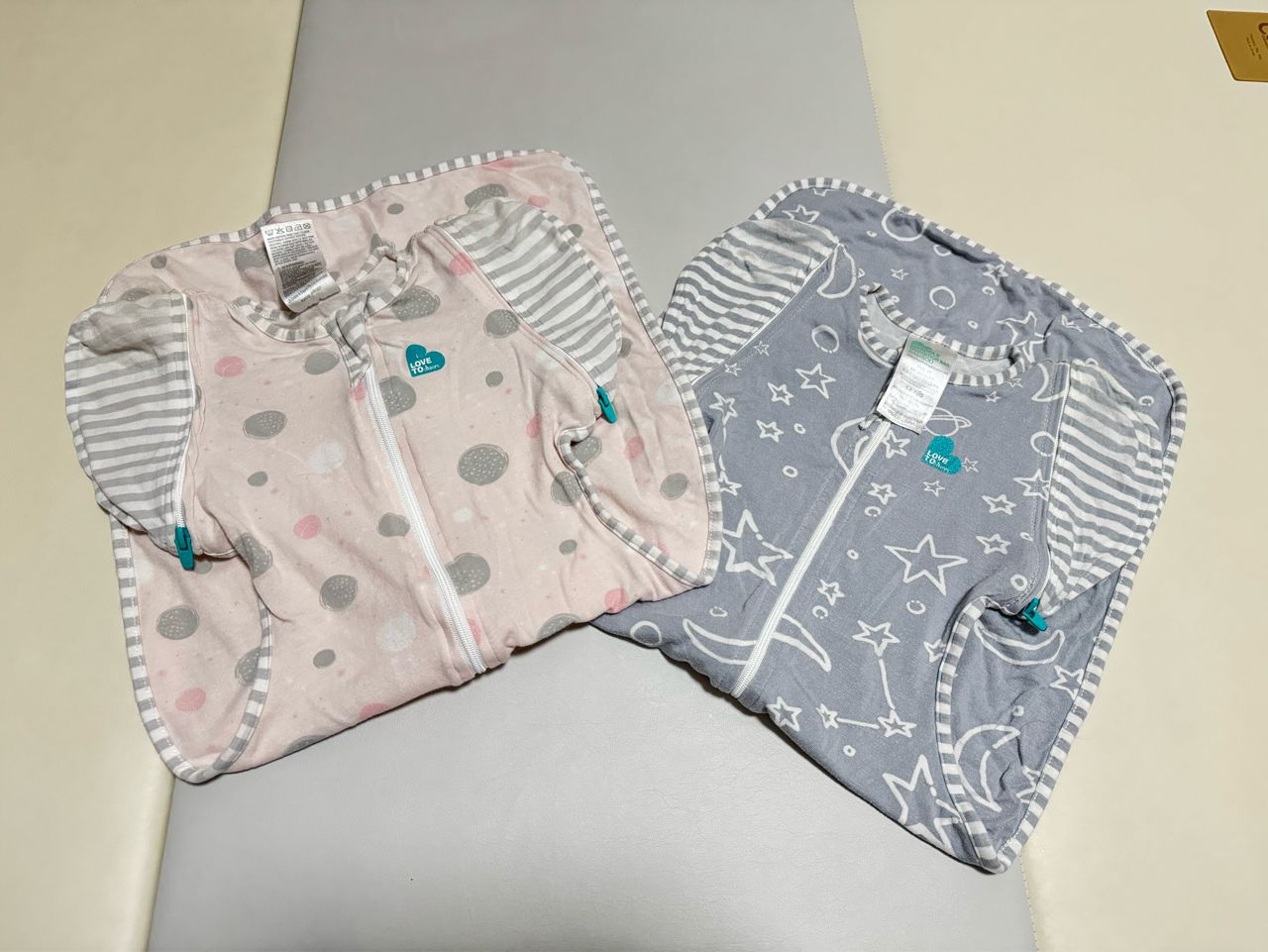 粉色左手袖子有微奶漬痕跡