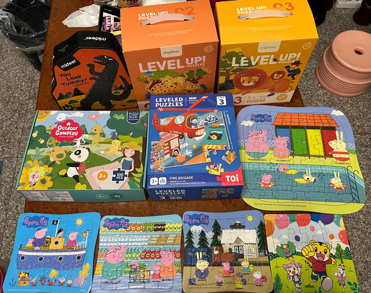 (4)另有巧虎12片1個、佩佩豬20片拼圖3個、佩佩豬42片拼圖1個
