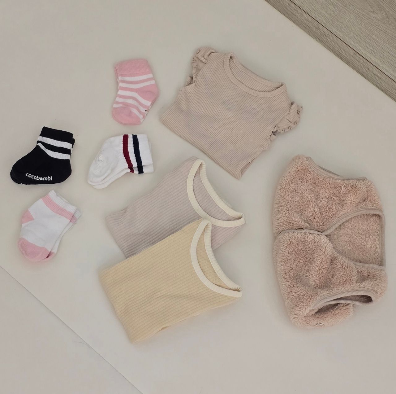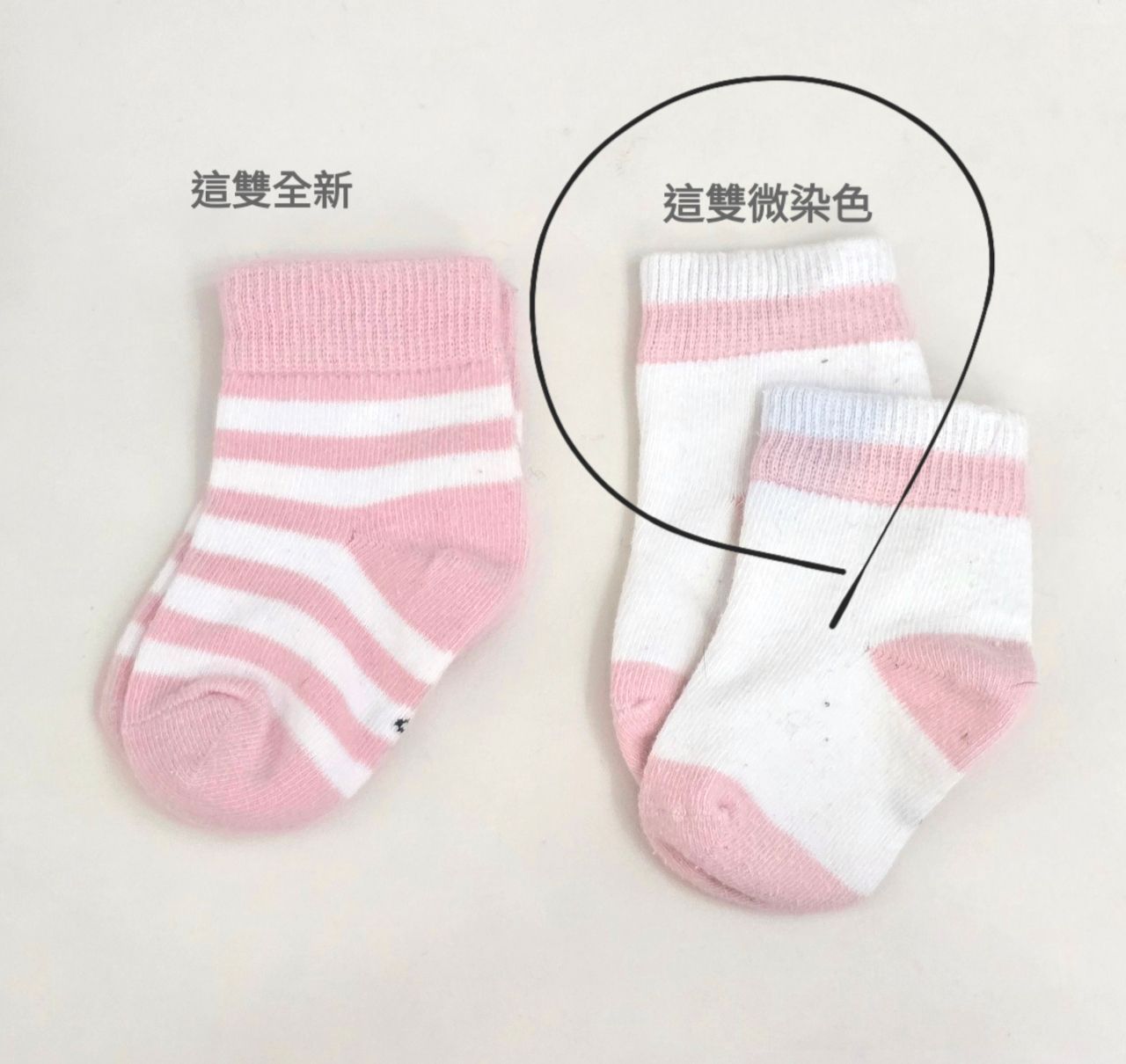 (襪子都只穿1-2次,但其中一雙局部有染色沒那麼白,當贈品)