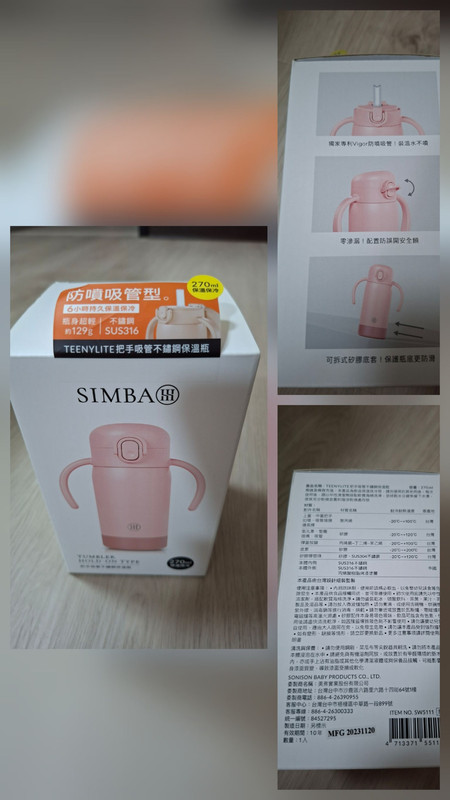1. 全新小獅王粉色 270ml 手提把不鏽鋼保溫杯 $320