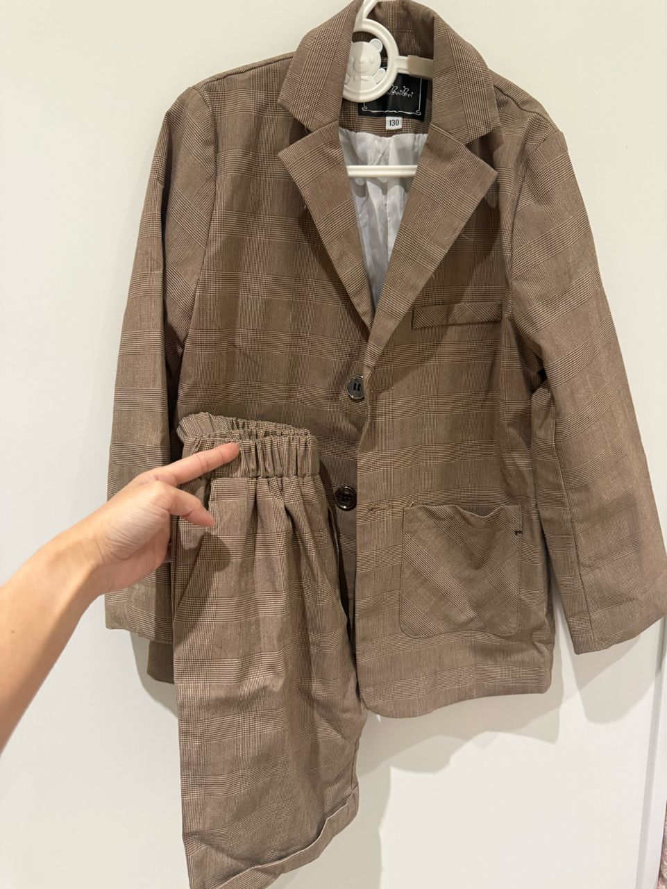 咖啡色3件套(短褲+西裝外+短袖白襯衫)200元