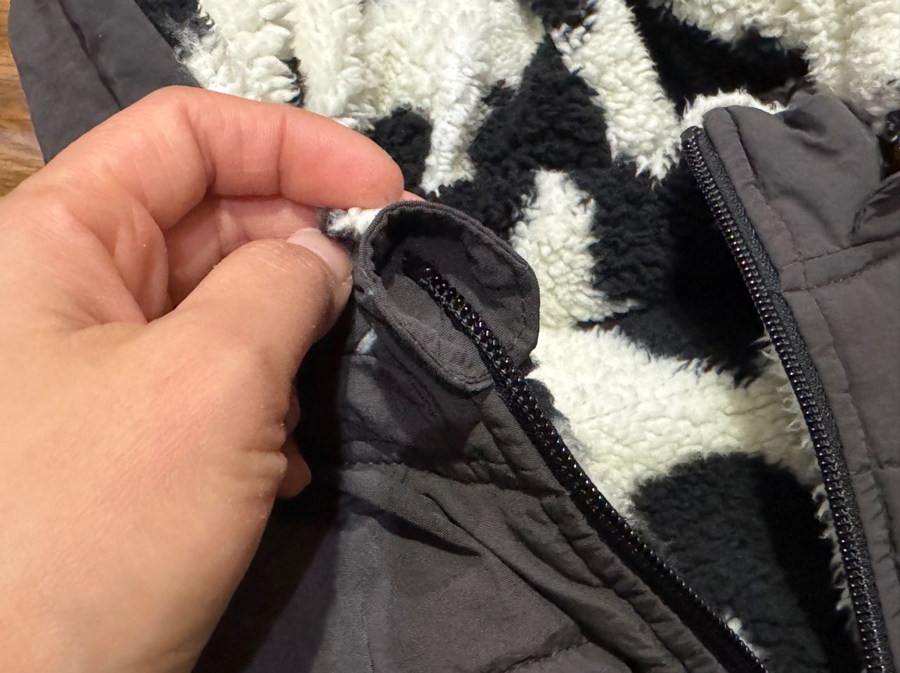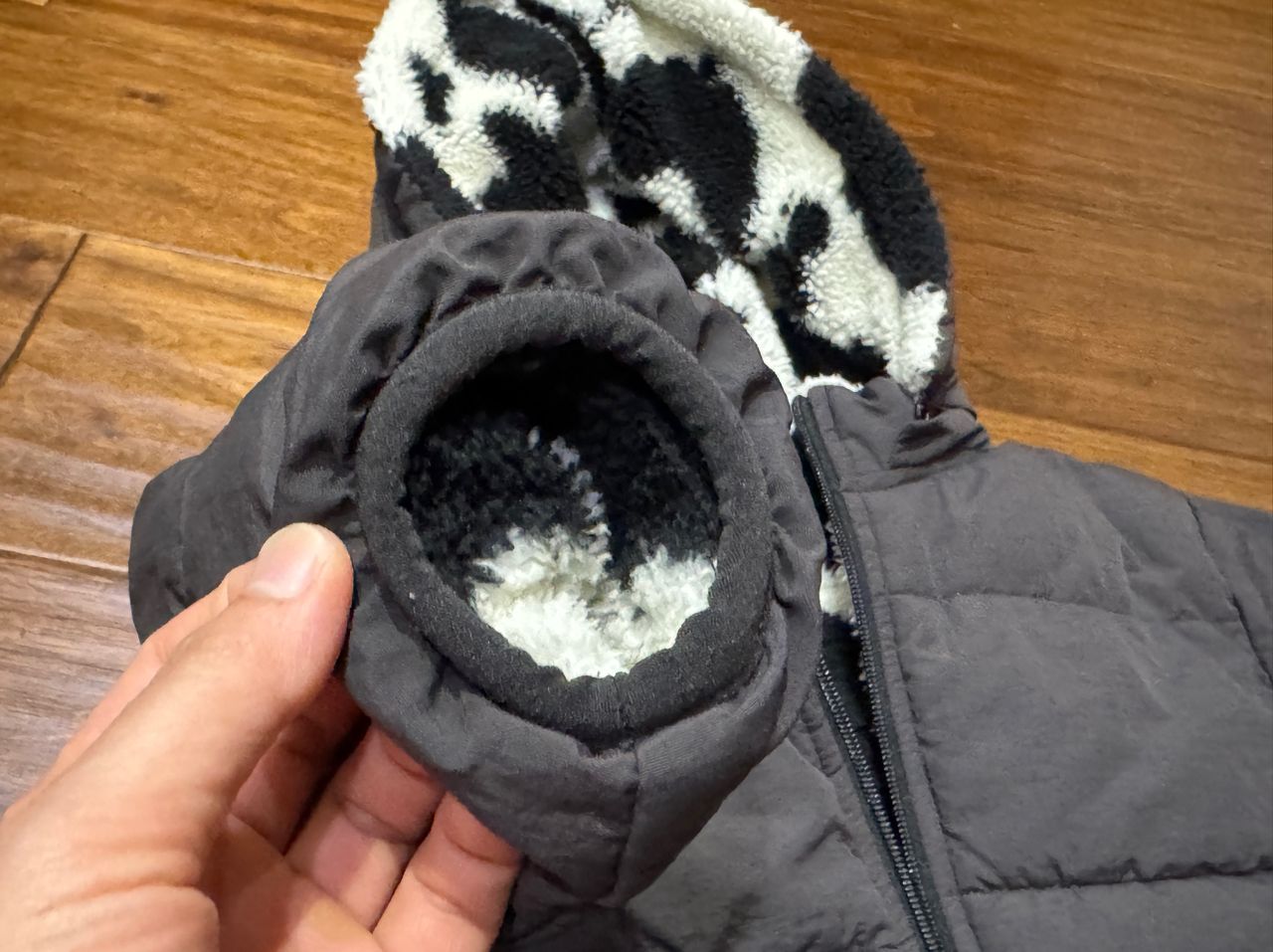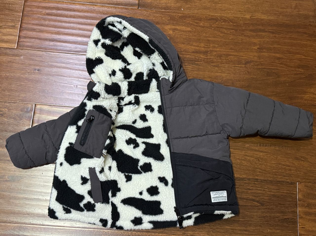 商品名稱:刷毛黑白連帽外套 尺寸110公分