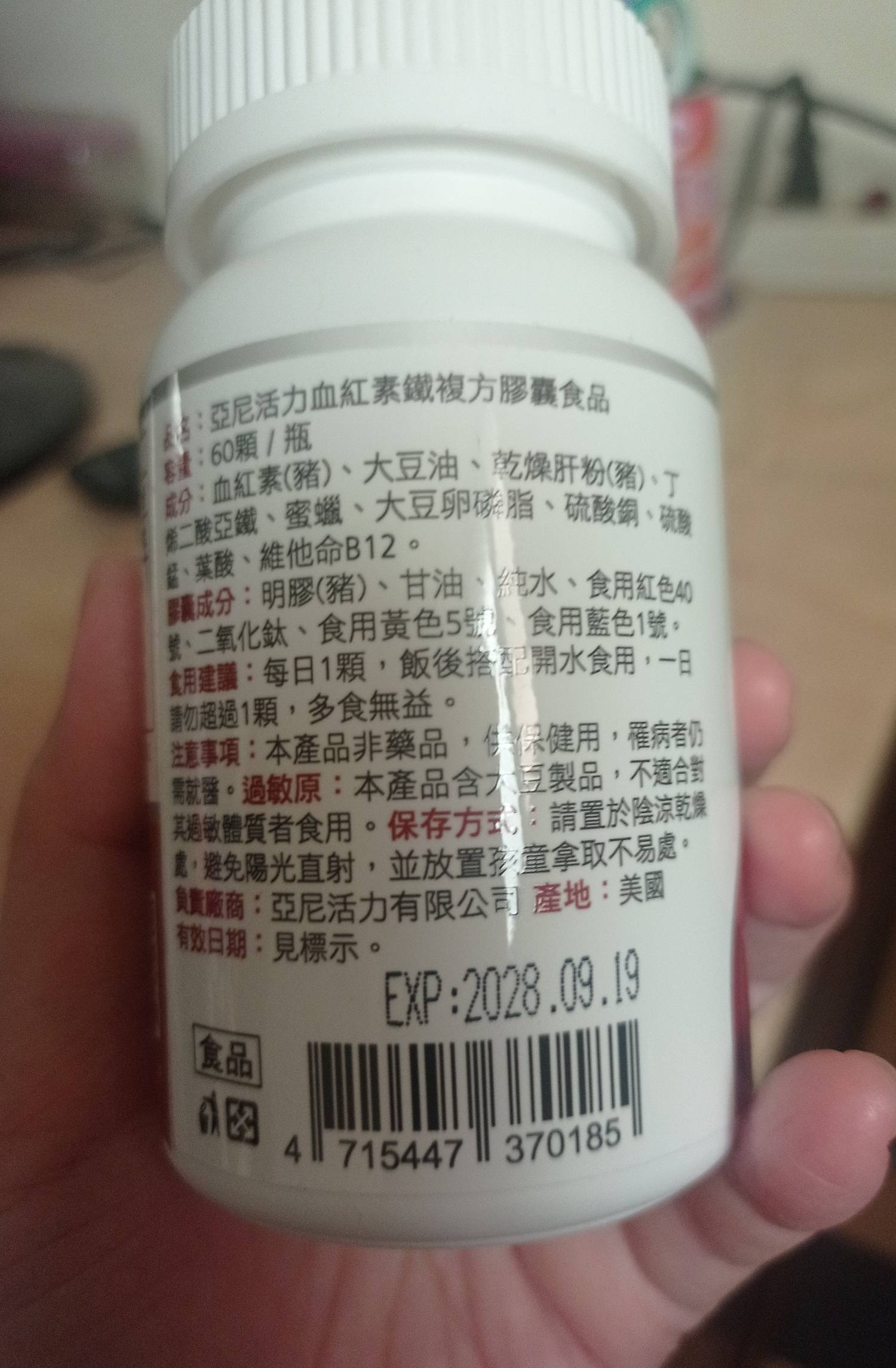 品名/品牌:亞尼活力 血紅素鐵