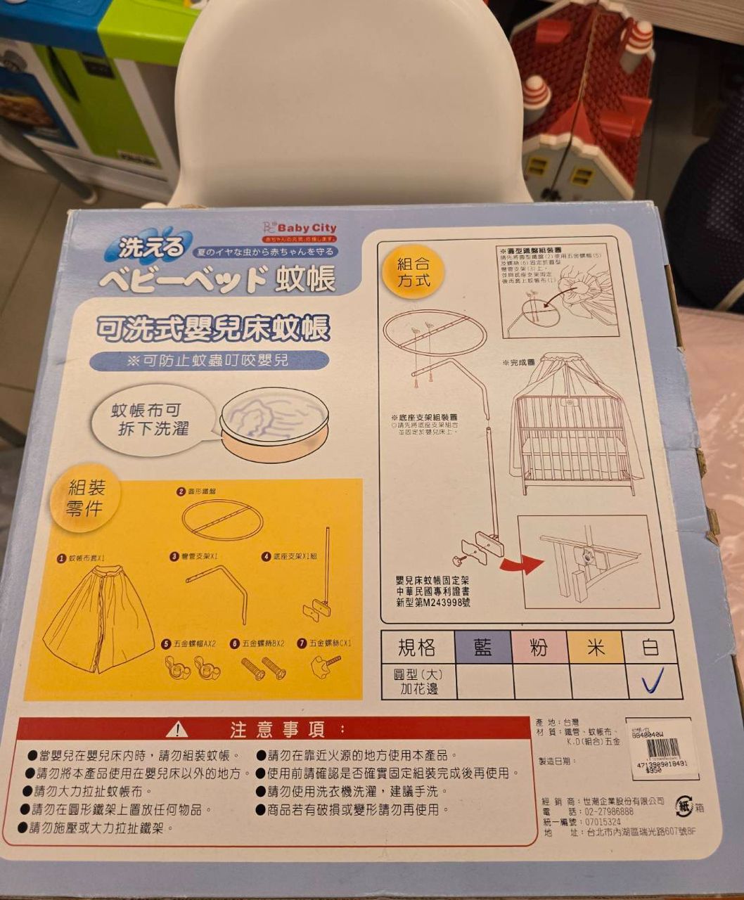 商品取得來源:床墊新光三越購入,蚊帳嬰兒用品店購入