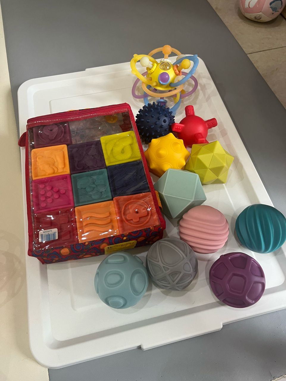 商品名稱:b.toys軟積木、小牛津觸覺球(無盒)、曼哈頓手抓球(無盒)