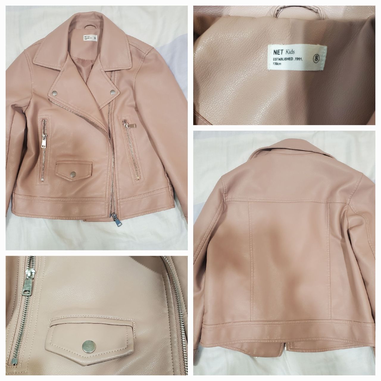 粉紅皮衣外套,過年時購入,後來天氣一熱,小孩就不穿,保存好,完全無汙無損。