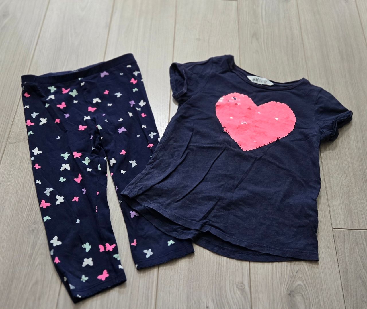 都是H&M的 翻面亮片上衣+七分內搭褲