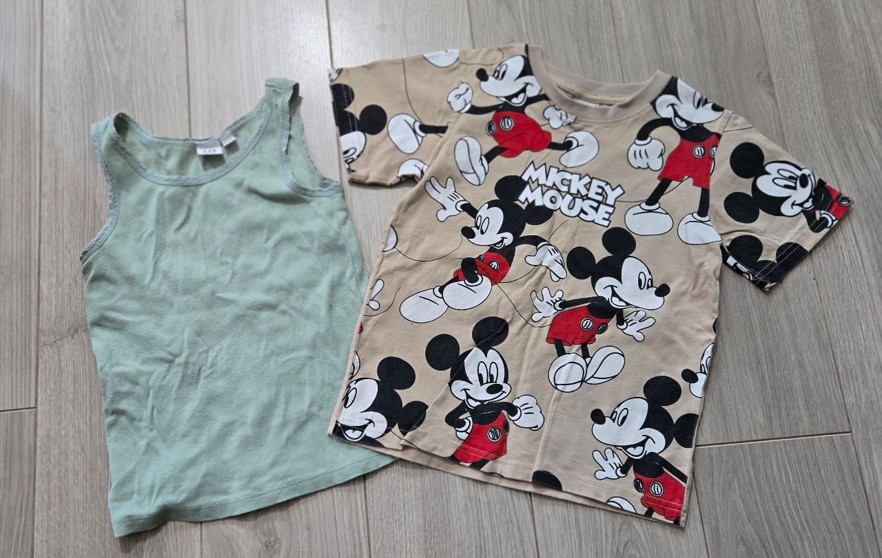 米奇滿版上衣+GAP內搭粉綠背心