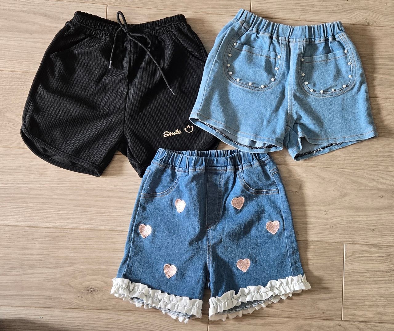 兩件牛仔-一件珠珠釘釦 一件愛心刺繡