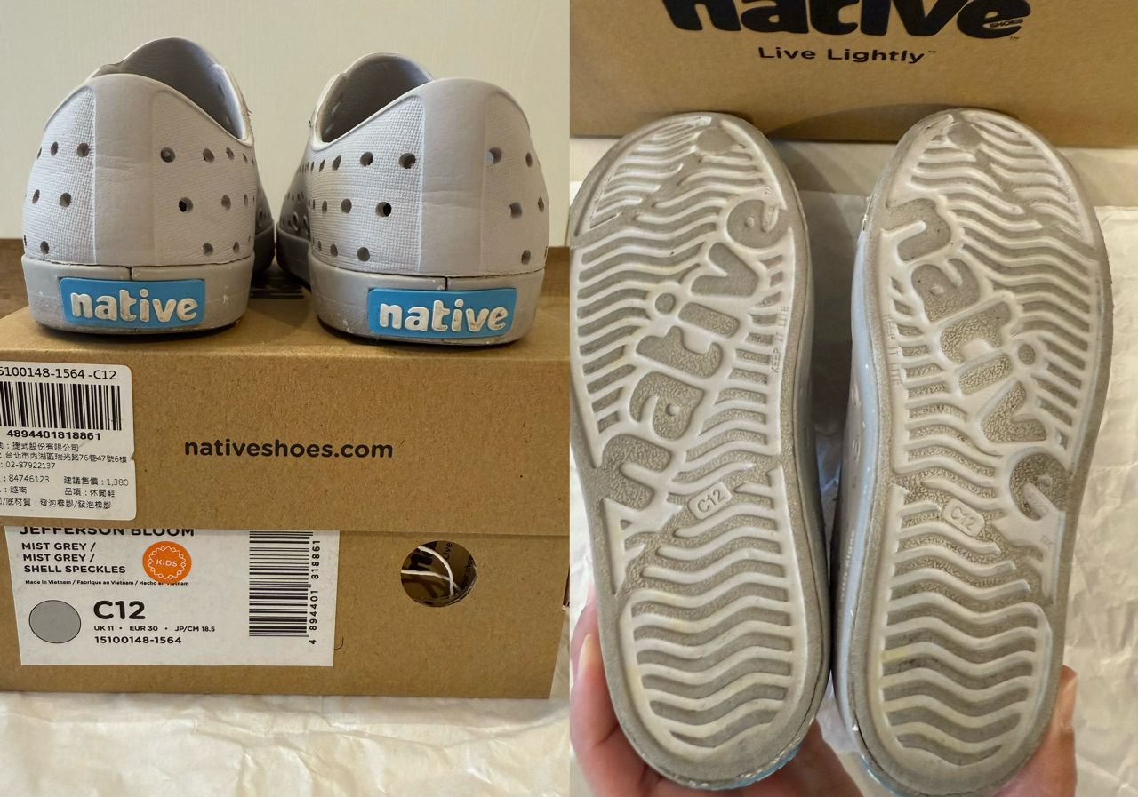 [出售] 全國 二手Native洞洞鞋 灰色童鞋 18.5cm