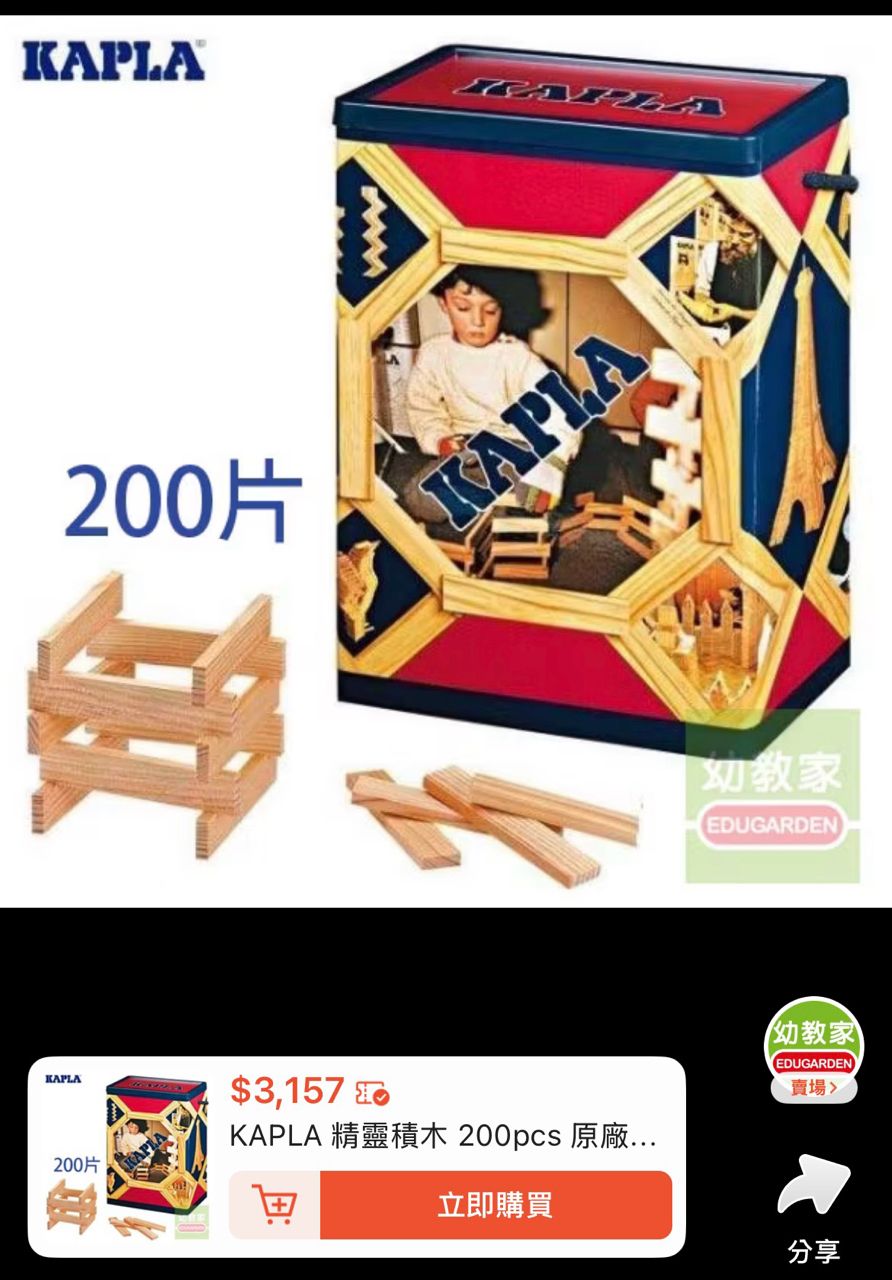 正版法國Kapla精靈積木超好玩,大人小孩都愛玩,我們家已購入1000片,所以將200片售