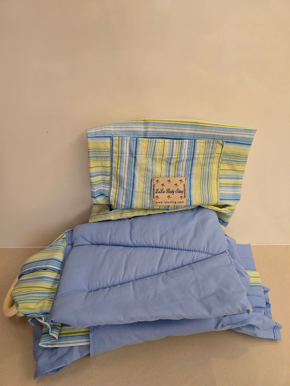 lulu baby sling揹巾肩膀處有小枕頭,另附收納袋。