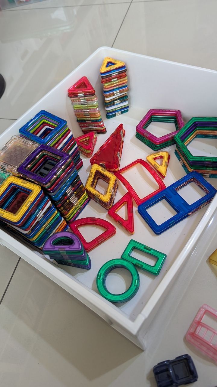 小朋友太愛玩了,所以一直新購不同形狀和配件,有magformers、food超人,還有一個忘