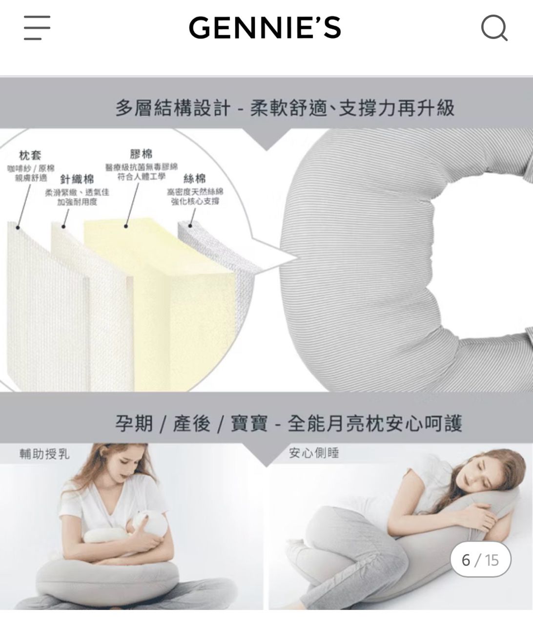 商品名稱:智能恆溫抗菌月亮枕-咖啡紗(灰)