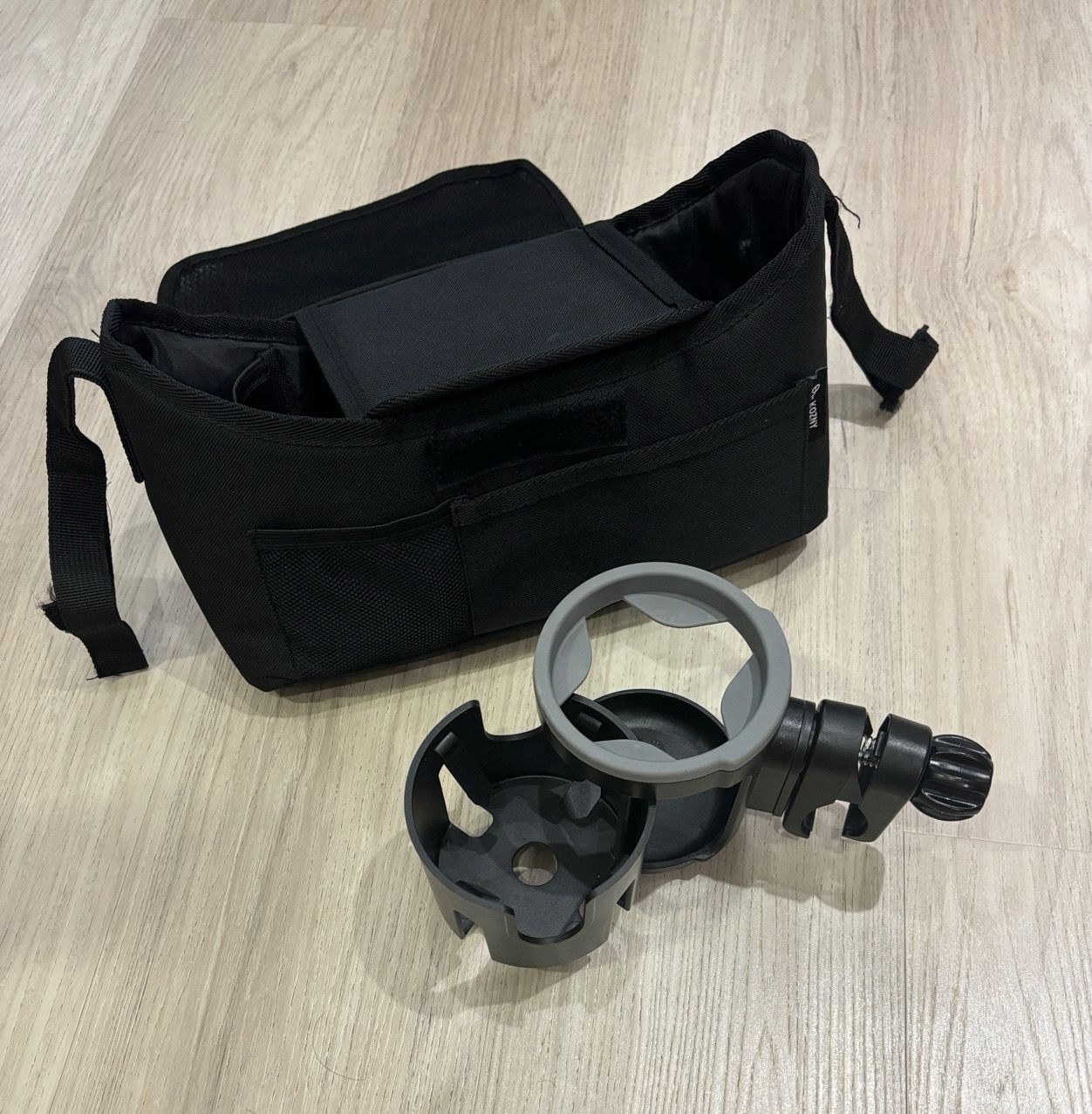 5. 推車收納包+杯架組 +minikoioi矽膠圍兜$200(九成新)