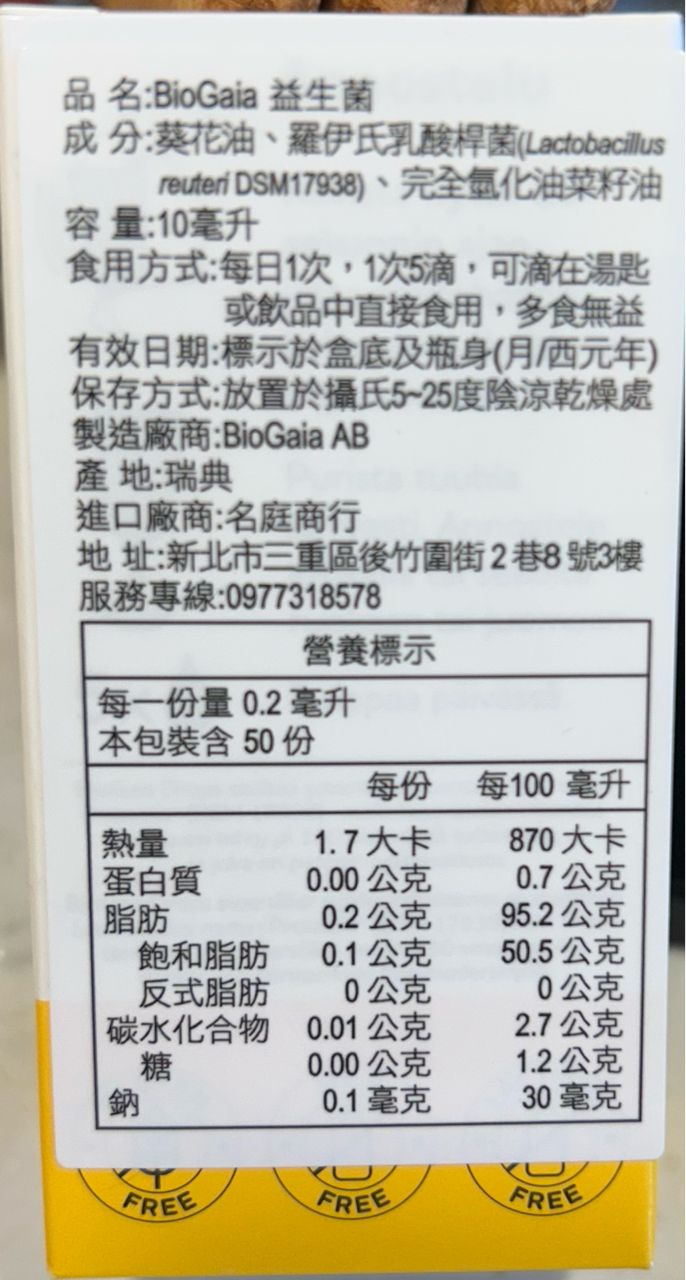 [食品] 全國/新竹 全新 BioGaia 乖寶亞10ml(軟管已刪文
