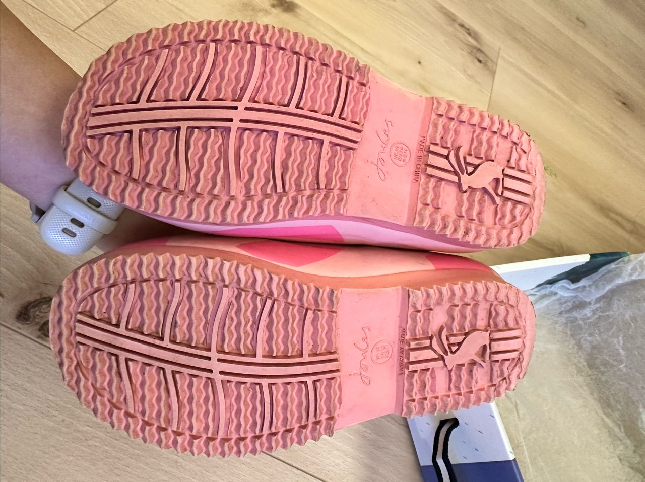 梅雨季很快又要來了,joules的兒童雨鞋耐穿好看。兩雙雨鞋都有穿過的痕跡,已清潔過