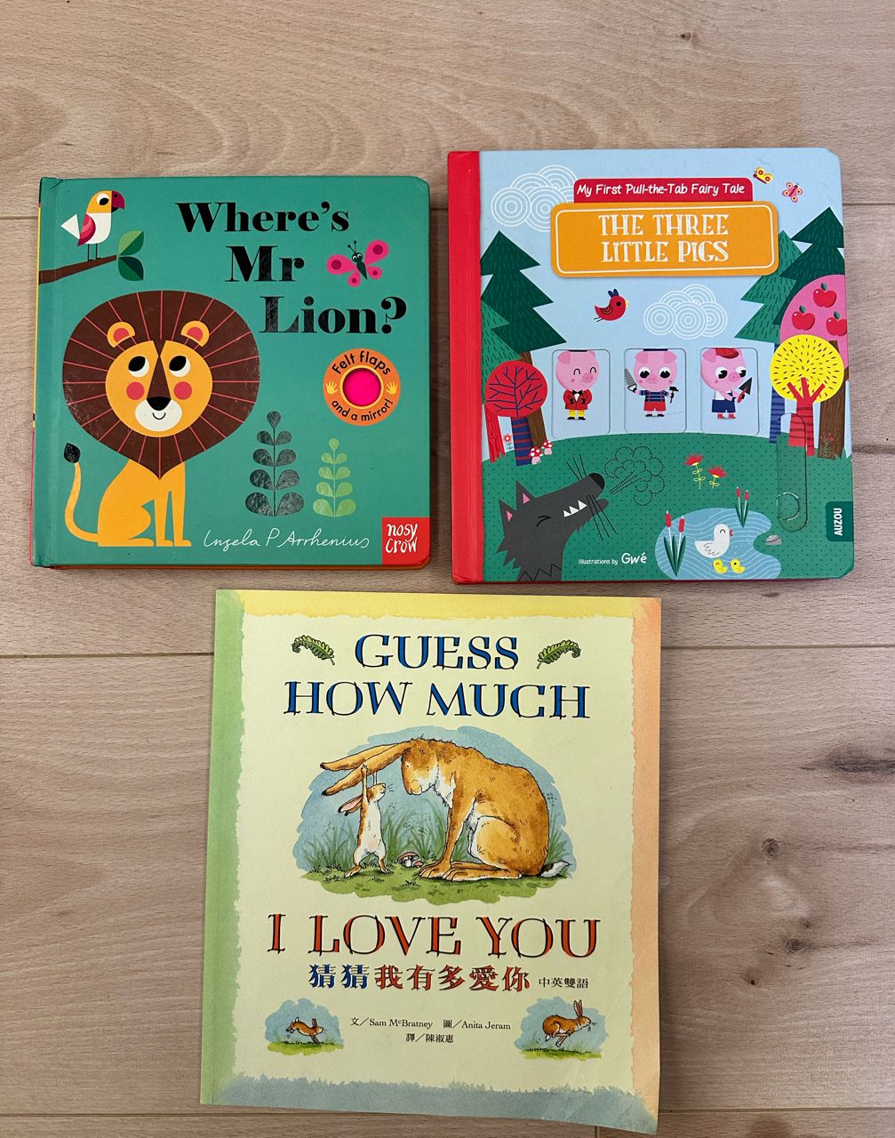 觸覺翻翻書和三隻小豬推拉書保存良好,翻翻書的鏡子有些痕跡,其他大部分完整。