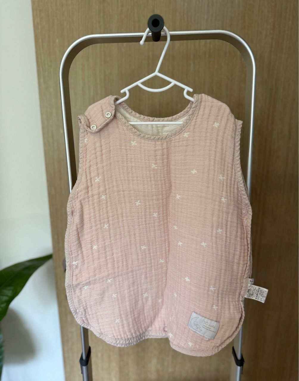 1、日牌Hoppetta 3層紗防踢被組-粉色十字紋 & 森林款(棉質易有棉洗感) 0-3Y、8成