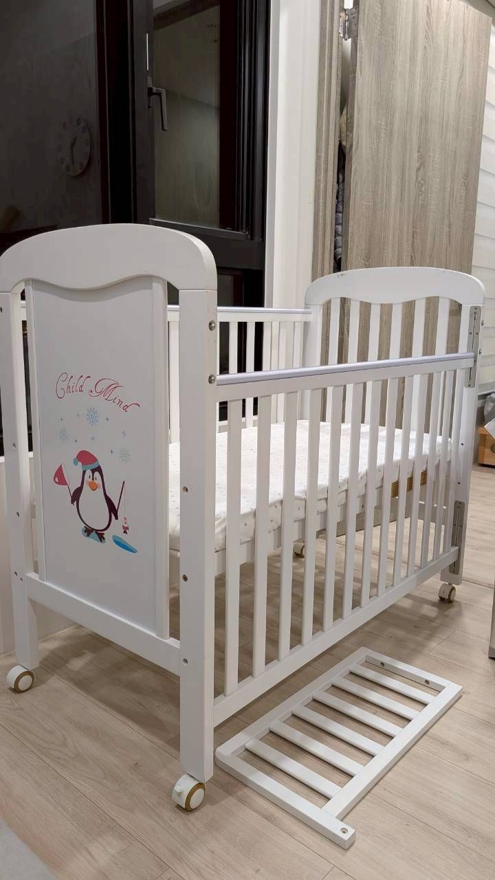 嬰兒床尺寸約60*120,附輪子*4(其中一顆輪子固定器斷掉但不影響滑動),小圍欄,床墊