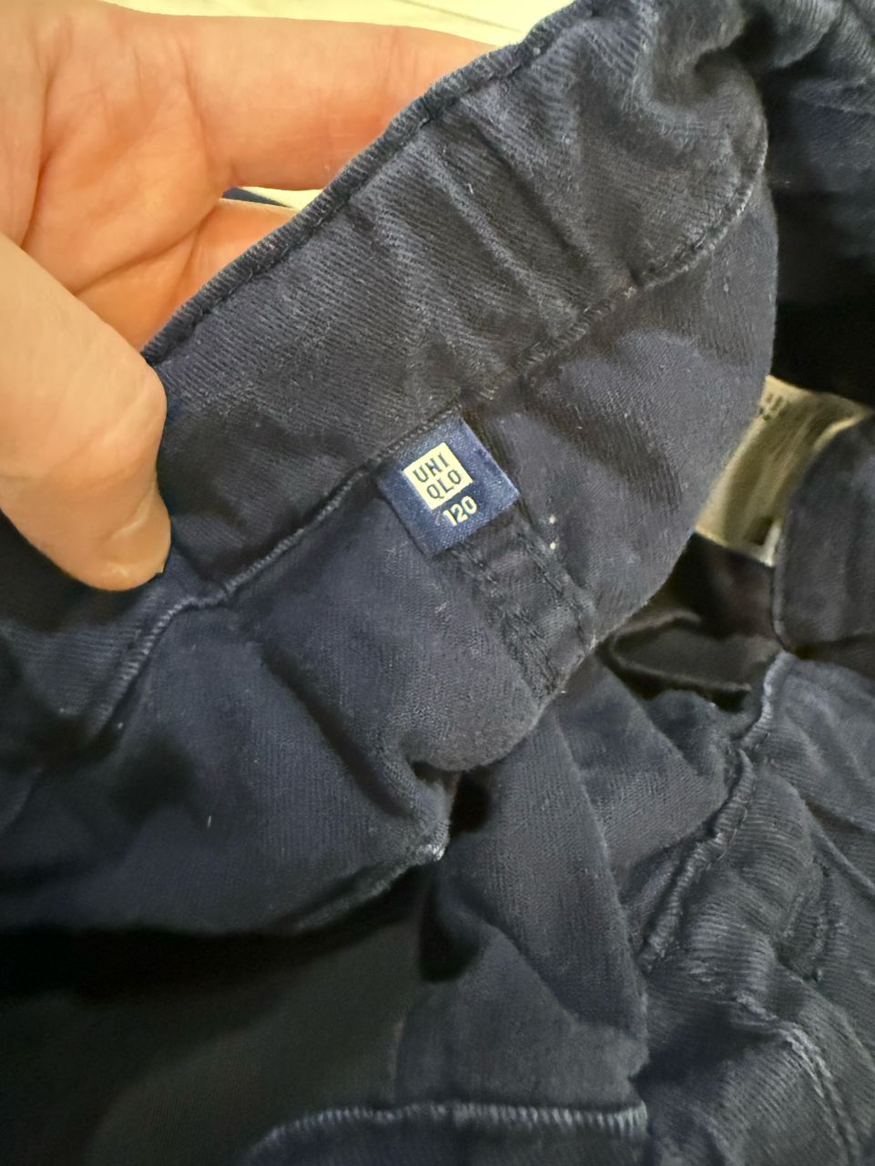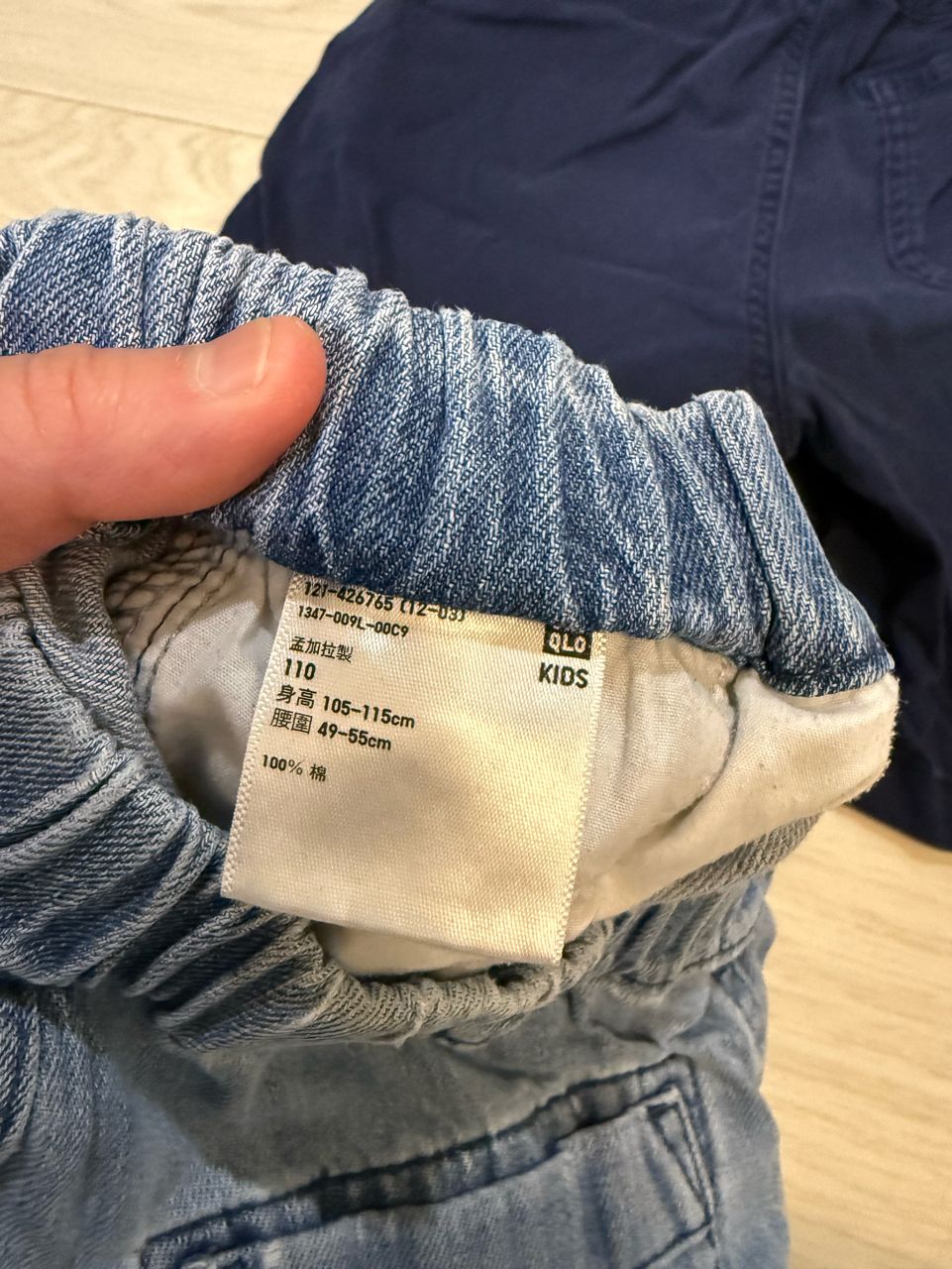 深藍棉質/版型較大牛仔褲為Uniqlo 尺碼110cm