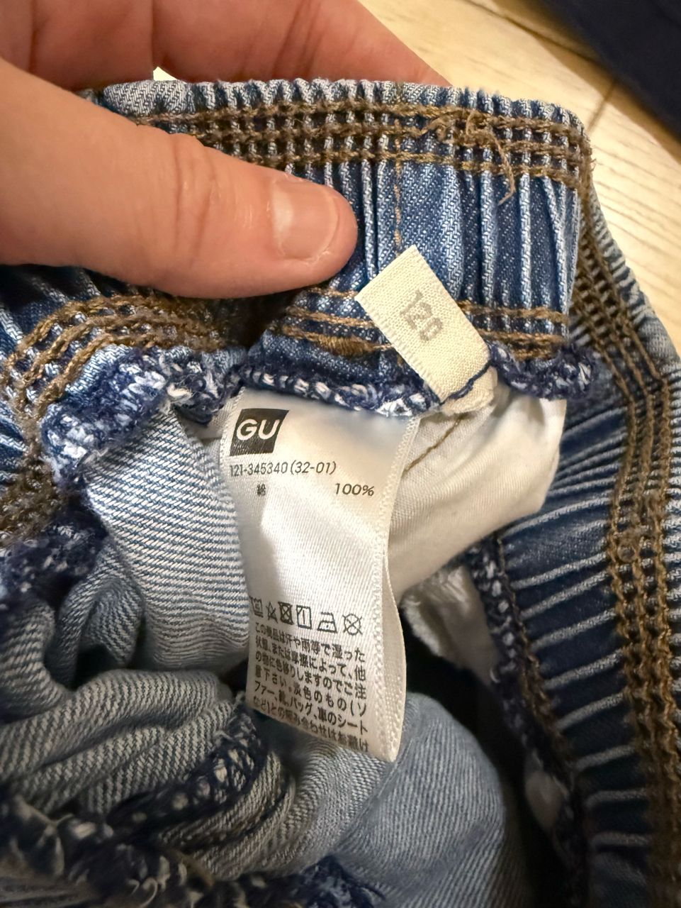 版型較小褲管較寬牛仔褲為GU 尺碼120cm