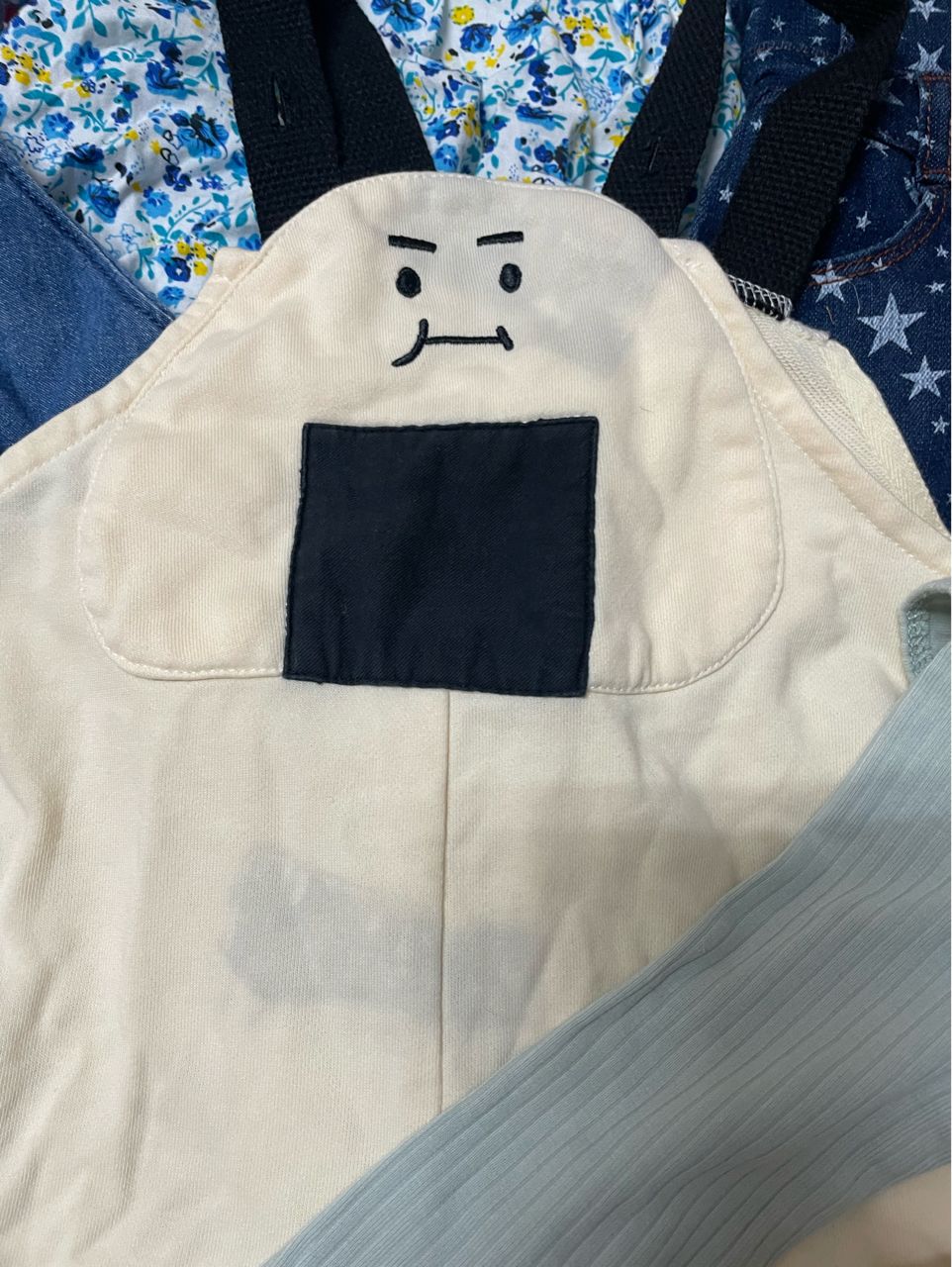家吊帶褲有部分區塊污漬,不介意再購買喔。