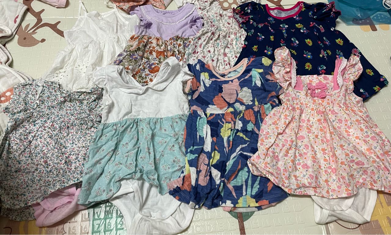 有幾件幾乎沒穿到,近全新。二手難免有不明顯破損或污漬,已賣的很便宜(當初一件20