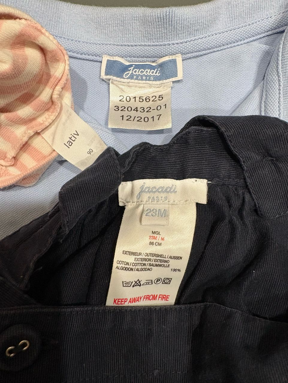 水藍Jacadi polo衫和Lativ高領內搭僅下水,Jacadi吊帶裙版型較大,可調節長度,專櫃