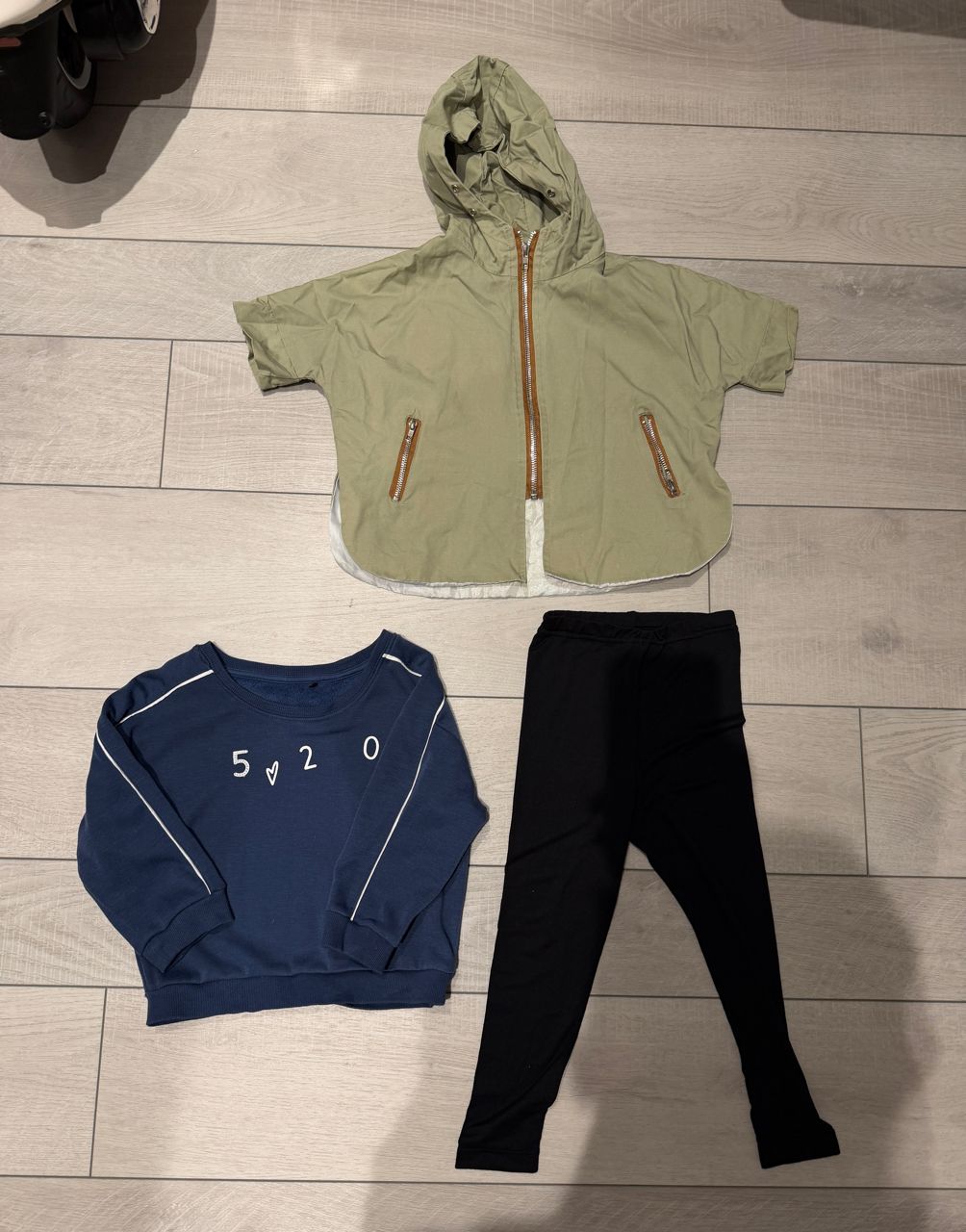 四一件斗篷外套一件Uniqlo發熱褲100公分,一件大學T