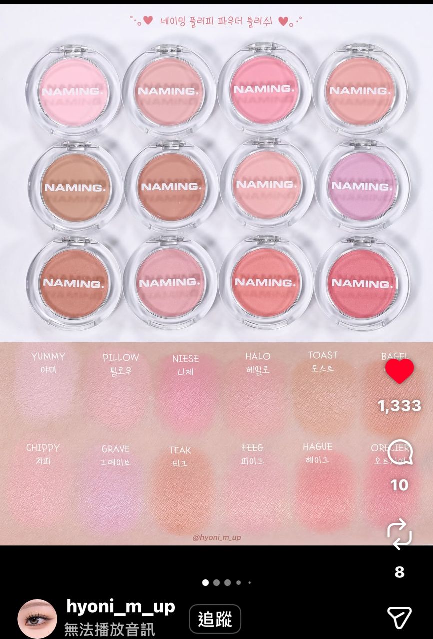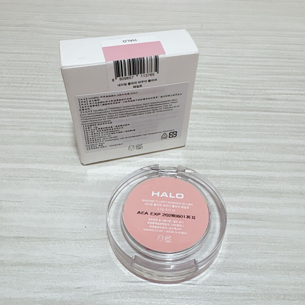2. Naming腮紅#Halo/3.2g/用過5次/保存期限至2028年6月/數量1/購入來源Unikcy藥妝店