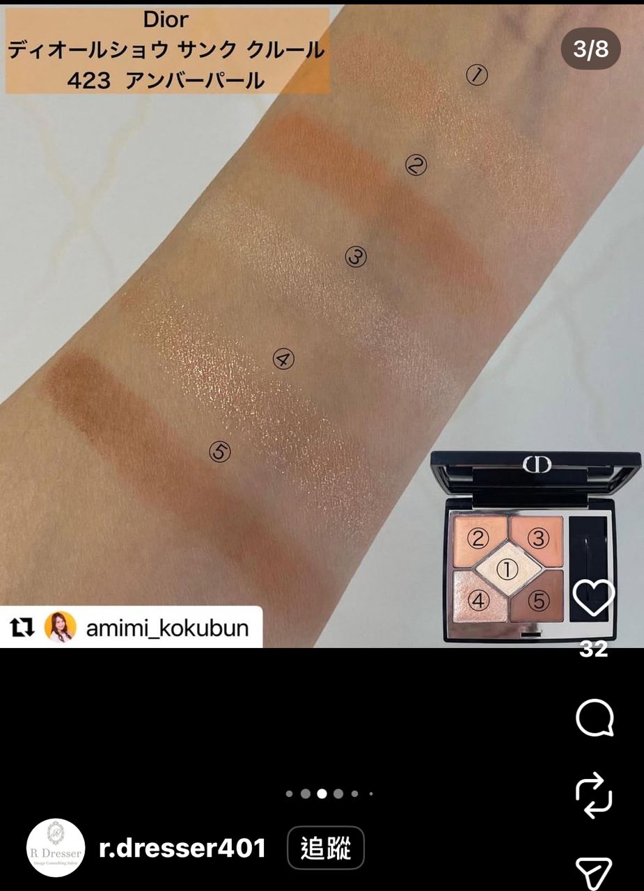 1. Dior五色眼影盤#423/7g/用過2次,眼影棒全新/批號4L01(2024年11月製造)/數量1/